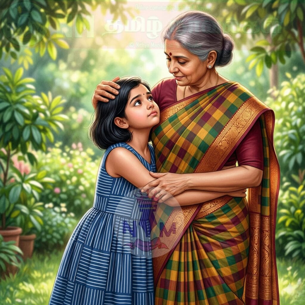 கோபத்தில் சிவந்த முகத்துடன் நிற்கும் இளையப் பேரனைப் பார்த்தவர், அவன் கையில் சிக்கியிருக்கும் பேத்தியின் கண்ணீரைக் கண்டதும்,