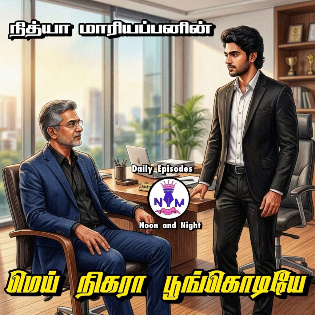காலையில் ஆனந்த் சாகரின் முகத்தில் விழிக்க அவன் தயங்கியதற்கு காரணம் தந்தை – மகன் உறவு. நித்திலாவைப் பற்றிய பேச்சு தங்களுக்குள் எழுவதை அவன் தவிர்க்க விரும்பினான்.