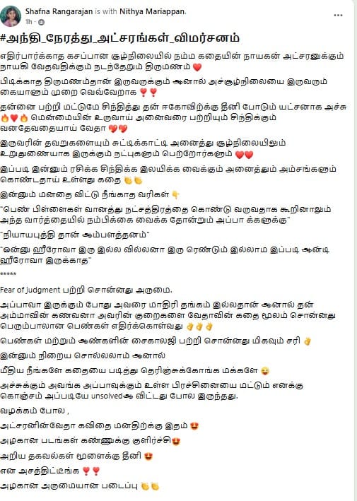 அந்தி நேரத்து அட்சரங்கள் கதைக்கு Shafna Rangarajan சிஸ் ரிவியூ...