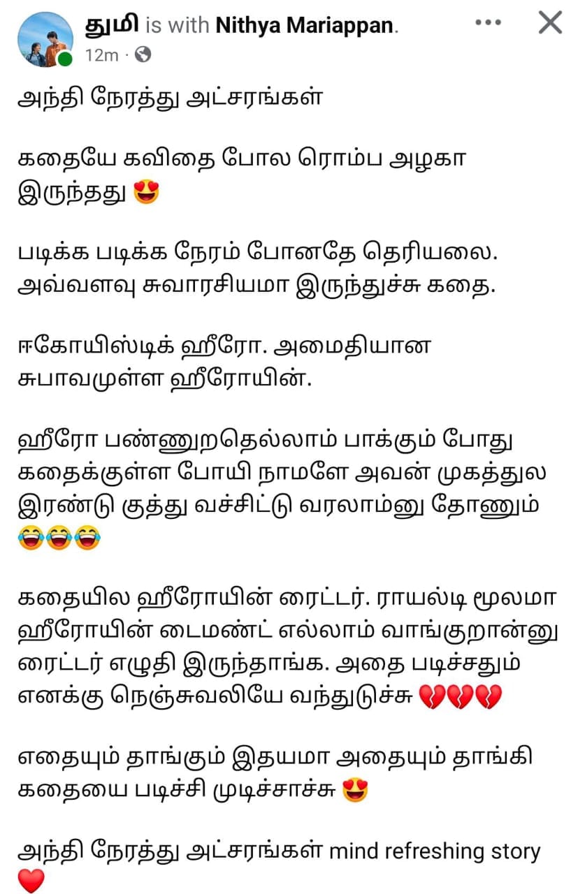 அந்தி நேரத்து அட்சரங்கள் mind refreshing story ❤️