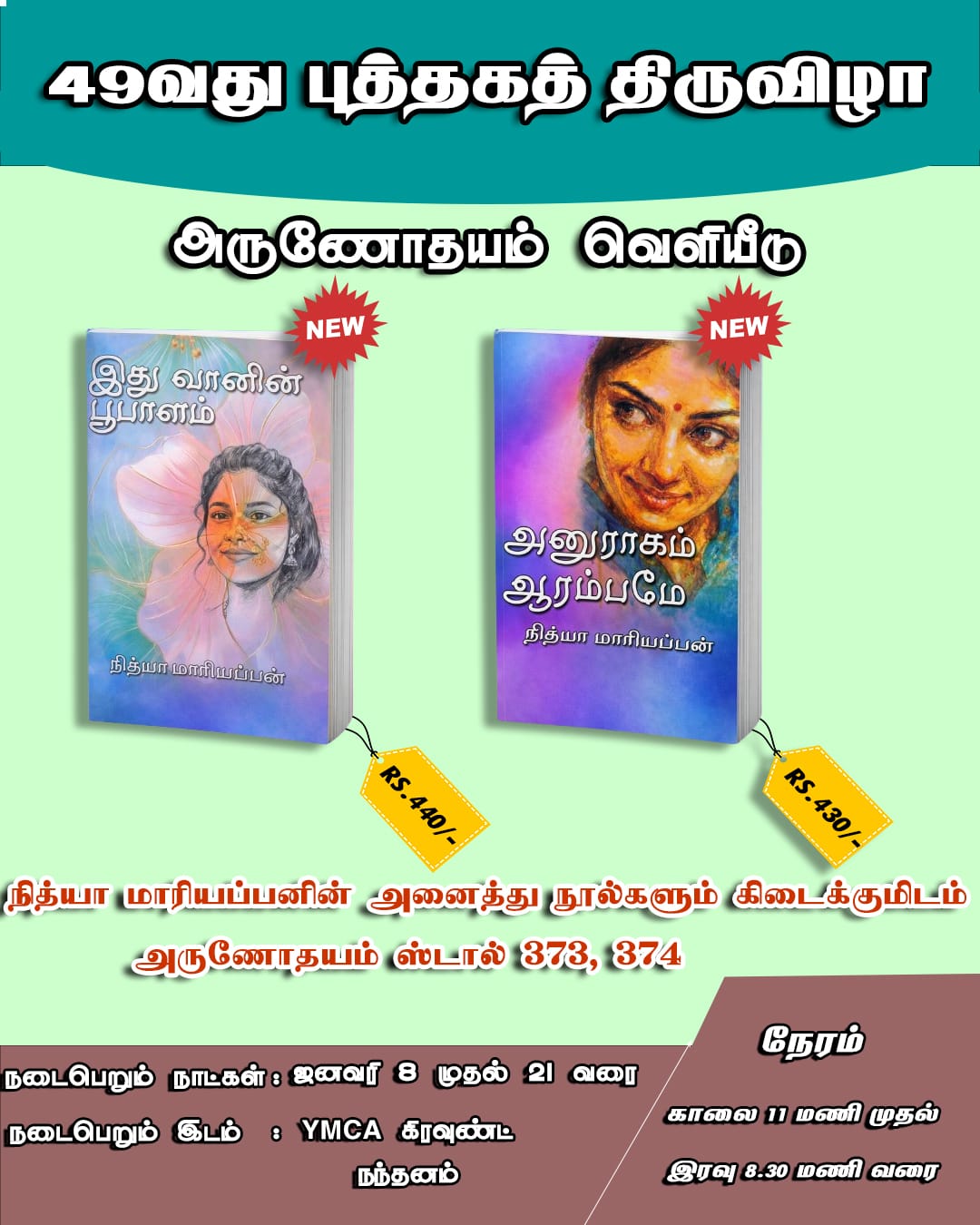புக் ஃபேருக்கு என்னோட ரெண்டு புத்தகங்கள் வெளியாகிருக்கு மக்களே! இன்னைக்கும் நாளைக்கும் யாராச்சும் புக் ஃபேர் போறிங்க, உங்களுக்கு புக் வாங்குற ஐடியா இருக்குனா இந்த புக்குகளை வாங்கி படிச்சு பாருங்க. ரெண்டுமே ஃபீல் குட் லவ் ஸ்டோரிகள் ப்ளஸ் ஃபேமிலி நாவல் டைப்தான்.