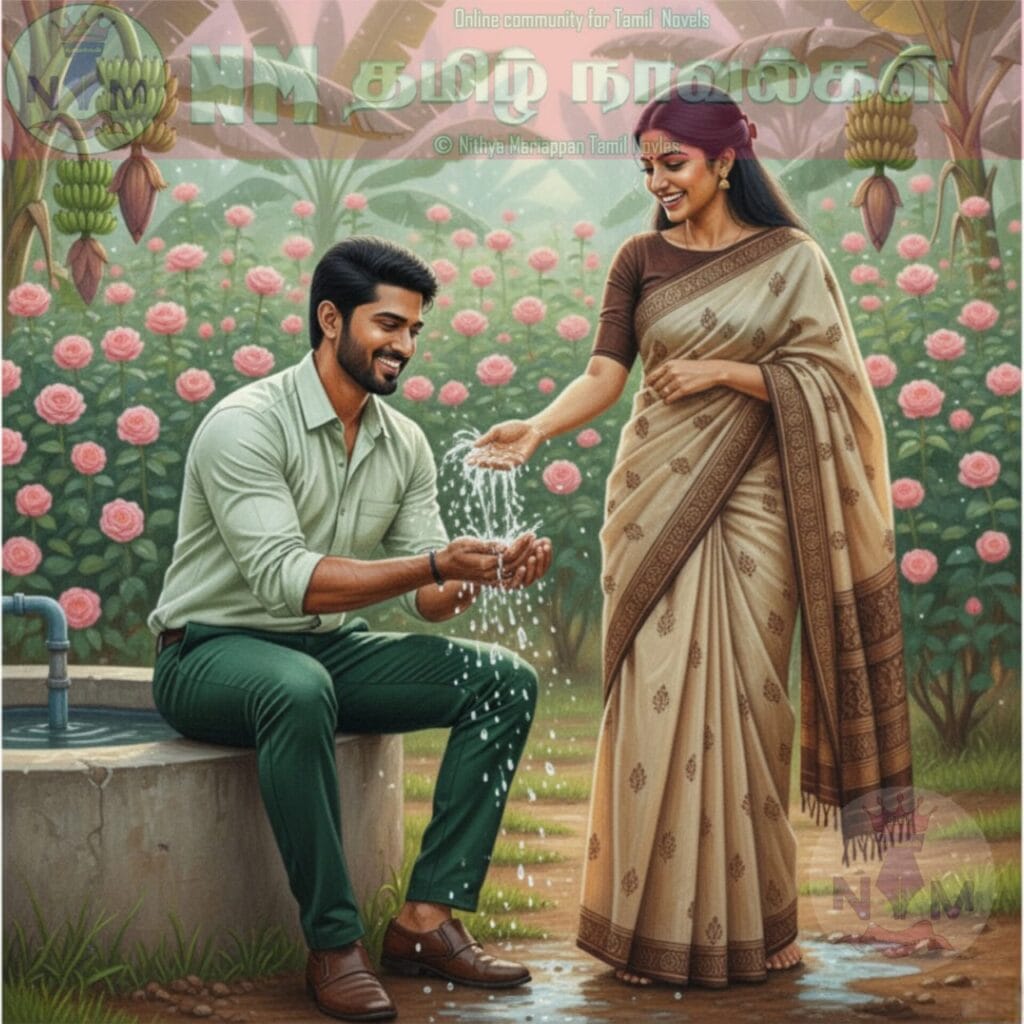 ஆதிராவை இறக்கிவிட்டவன் மோட்டார் ரூமுக்குள் சென்று அதை ஆன் செய்ய தடதடவென மோட்டார் ஓட ஆரம்பித்ததும் தண்ணீர் தொட்டியில் கொட்ட ஆரம்பித்தது. ஆதிரா சேறாகியிருந்த காலைக் கழுவிக்கொண்டாள்.