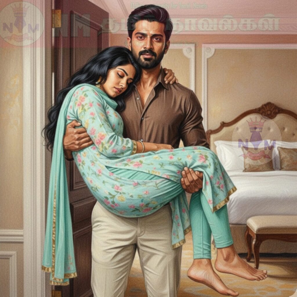ஆதிராவின் நிலையும் இதுவே! லிஃப்ட் தரைத்தளத்துக்கு வந்ததும் அவளைத் தன் கரங்களில் அள்ளிக்கொண்டு வெளியேறினான் புவனேந்திரன்.
