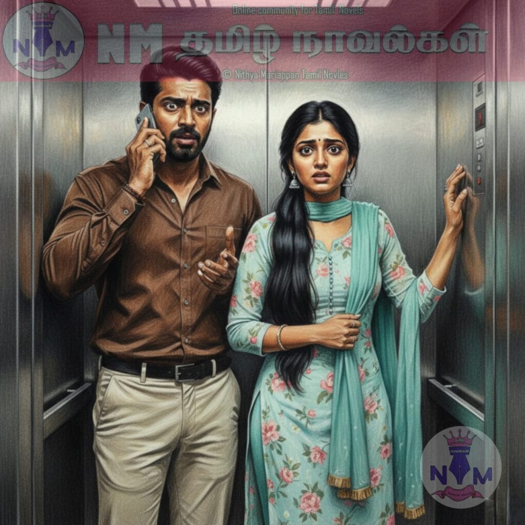 ஆதிராவும் புவனேந்திரனும் ஒரே நேரத்தில் அதிர்ந்து பக்கவாட்டுக் கம்பிகளைப் பிடித்துக்கொண்டார்கள். ஏதோ தொழில்நுட்பக்கோளாறில் திக்கித் திணறி இரண்டு தளங்களுக்கும் இடையே நின்றுவிட்டது லிஃப்ட்.