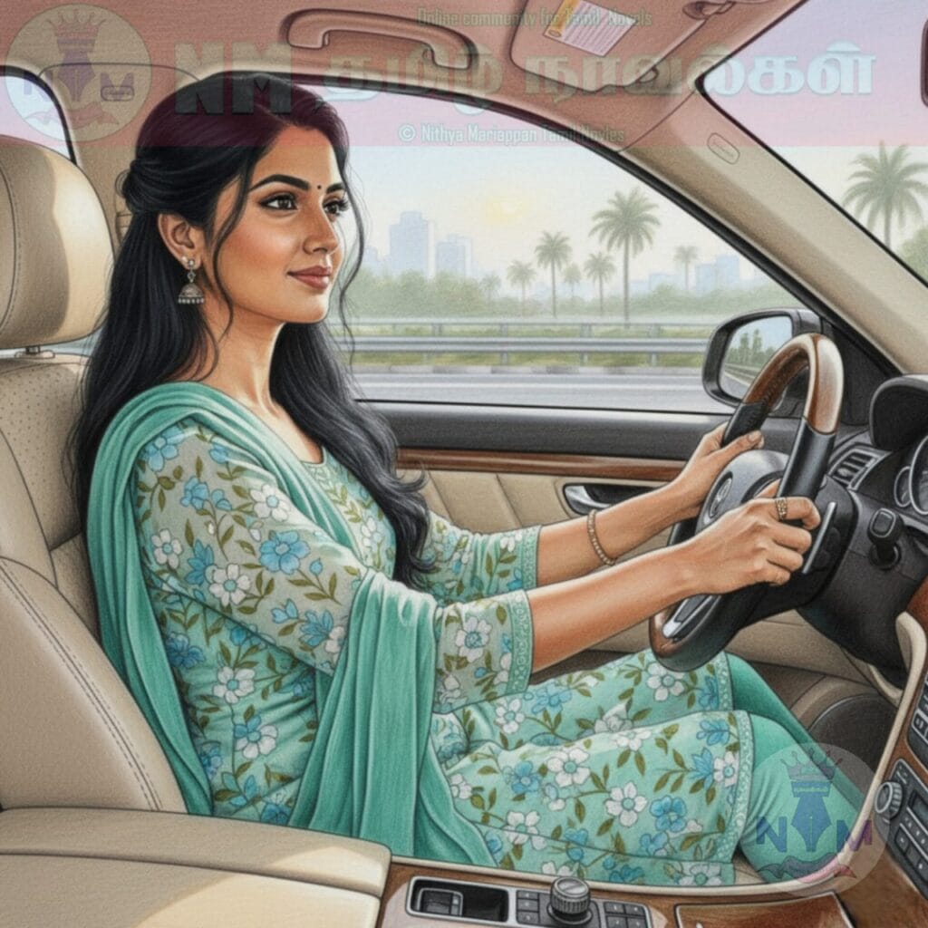 எனவே எண்ணங்களுக்குச் சங்கிலியிட்டுக் காரை ஓட்டுவதில் கவனமானாள் ஆதிரா.